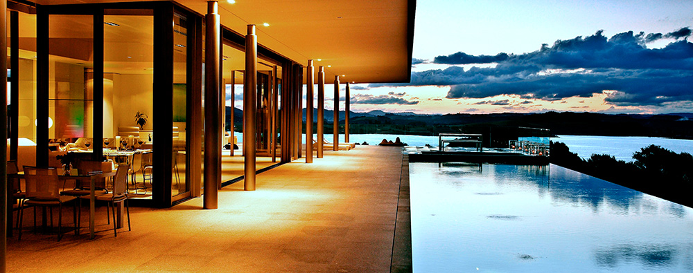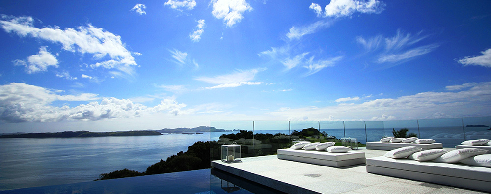 With over a kilometer of beach and ocean frontage overlooking unlimited deep water anchorage, this iconic, one of a kind masterpiece also features a 25 meter infinity pool overlooking your own private beach, helipad, and acres of pristine private land and native bush.